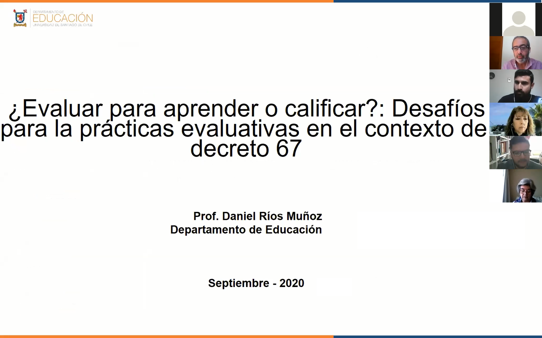 En esta oportunidad, el tema a tratar fue ¿Evaluar para aprender o para calificar?: Desafíos para las prácticas evaluativas en el contexto del decreto 67, en referencia a las prácticas evaluativas que han tenido que enfrentar los docentes en este difícil contexto de pandemia y de educación remota. Para ello el expositor fue el académico del Departamento de Educación y Director del Magíster en Educación, mención Currículum y Evaluación, Dr. Daniel Ríos.