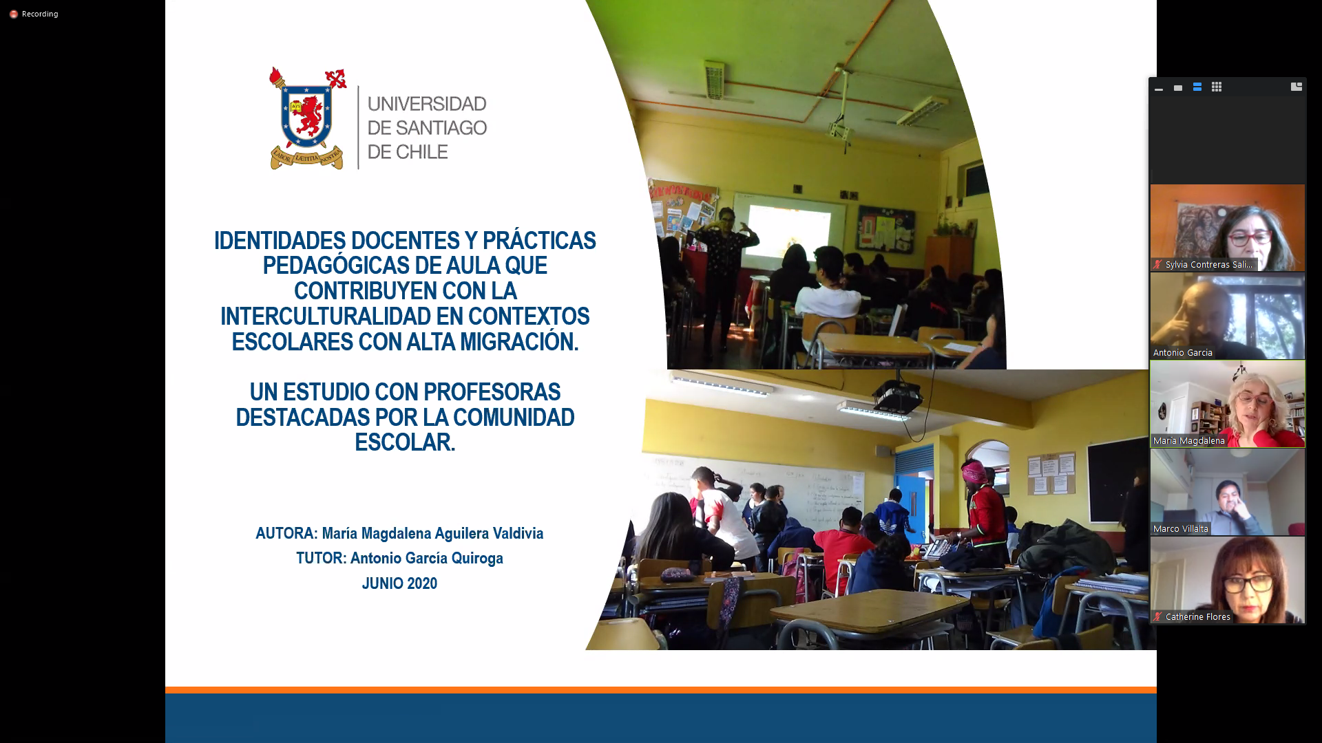 En la investigación titulada “Identidades docentes y prácticas pedagógicas de aula que contribuyen con la interculturalidad en contextos escolares con alta migración. Un estudio con profesoras destacada por la comunidad”, la candidata a doctora señala que “fue llevado a cabo con profesoras que desarrollan prácticas pedagógicas que contribuyen con la interculturalidad en contextos multiculturales con alta concentración de escolaridad migrante; profesoras que fueron seleccionadas en este ámbito por sus comunidades escolares”.