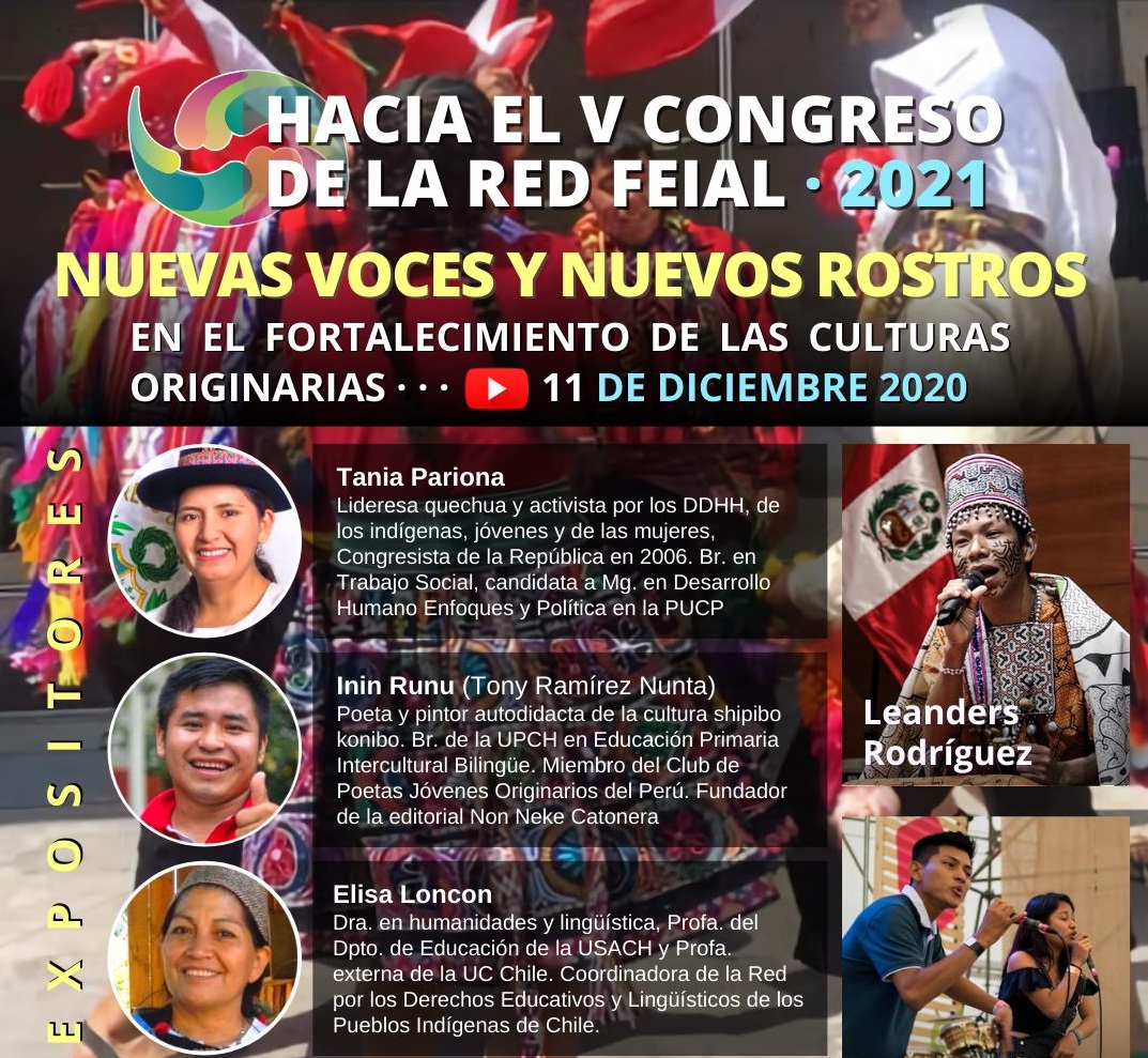 La organización, a cargo de la Red FEIAL, cuyo objetivo es la generación, fomento y difusión del conocimiento sobre la educación intercultural, entre disciplinas y naciones, para compartir experiencias y generar conocimientos en investigación, formación y diversidad, organizó el seminario “Nuevas voces y nuevos rostros en el fortalecimiento de las culturas originarias” en el que la Dra. Loncon expuso junto a Tamia Paiona y Tony Ramírez.