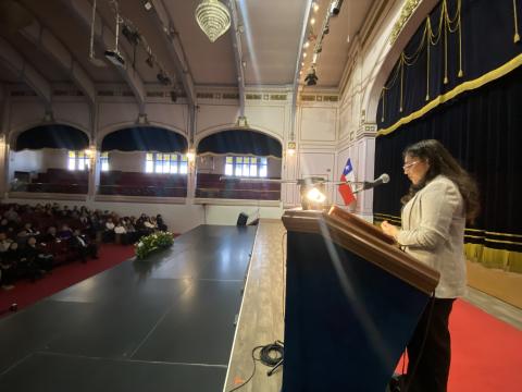 Desde la voz estudiantil, la representante del Centro de Estudiantes, Millaray Poblete, entregó un mensaje inspirador a sus compañeras y compañeros:“Hoy es un día especial, que marca el inicio de una etapa profundamente transformadora: el comienzo de sus prácticas pedagógicas. (...) Van a descubrir cosas maravillosas: una niña que les va a decir ‘profe, me encantó su clase’, un niño que por fin entenderá un contenido gracias a ustedes, o quizás alguien que los verá como el adulto que necesitaba, ese que escucha, que entiende, que acompaña”.