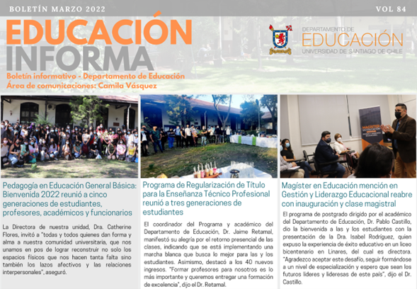 El Área de Comunicaciones del Departamento de Educación presenta el boletín informativo correspondiente a marzo de 2022, con las actividades más destacadas del mes.