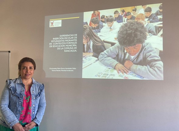Experiencias Escolares de Estudiantes Migrantes en Contextos Formales de Educación Municipal en la Comuna de Rancagua es el título de la investigación presentada por la candidata María Teresa Hernández.