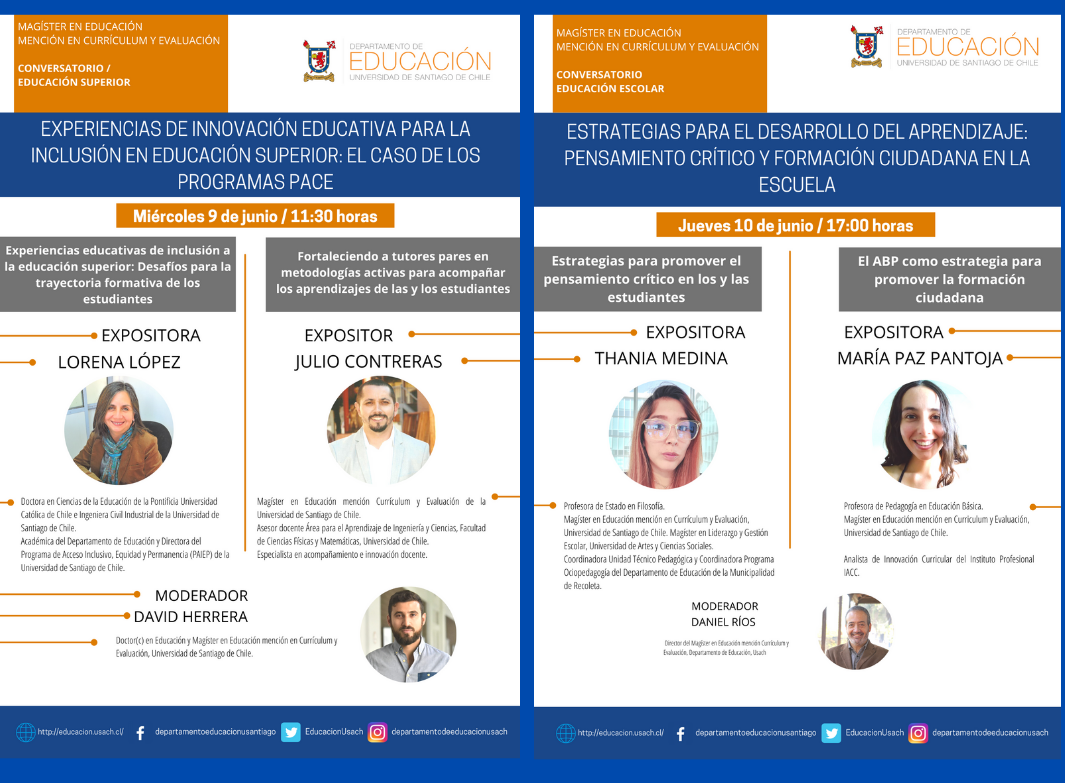El ciclo de conversatorios organizado por el Magíster en Educación mención en Currículum y Evaluación tiene por objetivo contribuir con todas las actividades docentes que se están realizando desde el año pasado en términos de formación online o remota.
