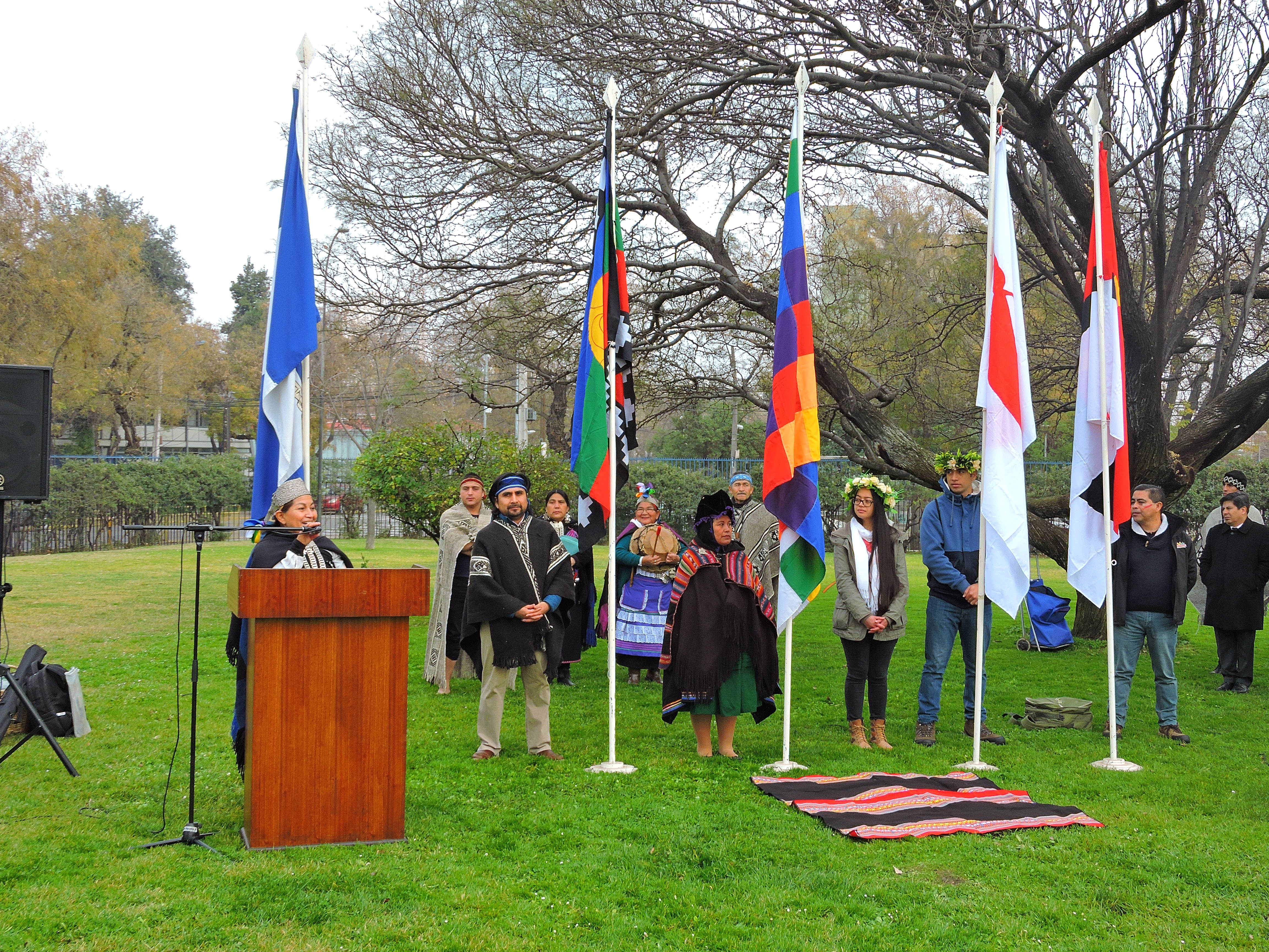 En la ceremonia cada pueblo izó su bandera. En representación del pueblo mapuche lo hizo José Vásquez; del pueblo selknam, Juan Huincabal; del pueblo rapa nui, Melisa Pons; y del pueblo aymara, Jannet Patzi.
